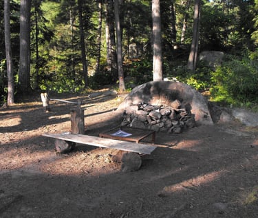 Location: East end of Naiscoot Lake, Ontario. Island campsite.