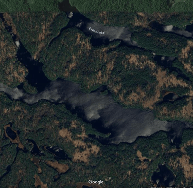 Observations: No noticeable scents. Earlier that day, we had explored the rocky, steep terrain between Naiscoot and Evans Lake, discovering several caves and unusual tree structures, including a crossed branch formation. No campsites were visible near the vocalization’s origin, and no other campers or hunters were seen east of the lake. The north side of Naiscoot Lake has rocky and cavernous terrain, which might support undetected movement.