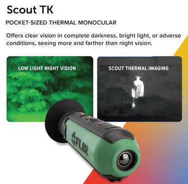Overall, the FLIR Scout TK is an excellent choice for anyone who wants to enhance their outdoor experience with advanced thermal imaging technology. Whether you're a hunter, hiker, or wildlife enthusiast, this monocular is sure to impress with its incredible performance and ease of use.